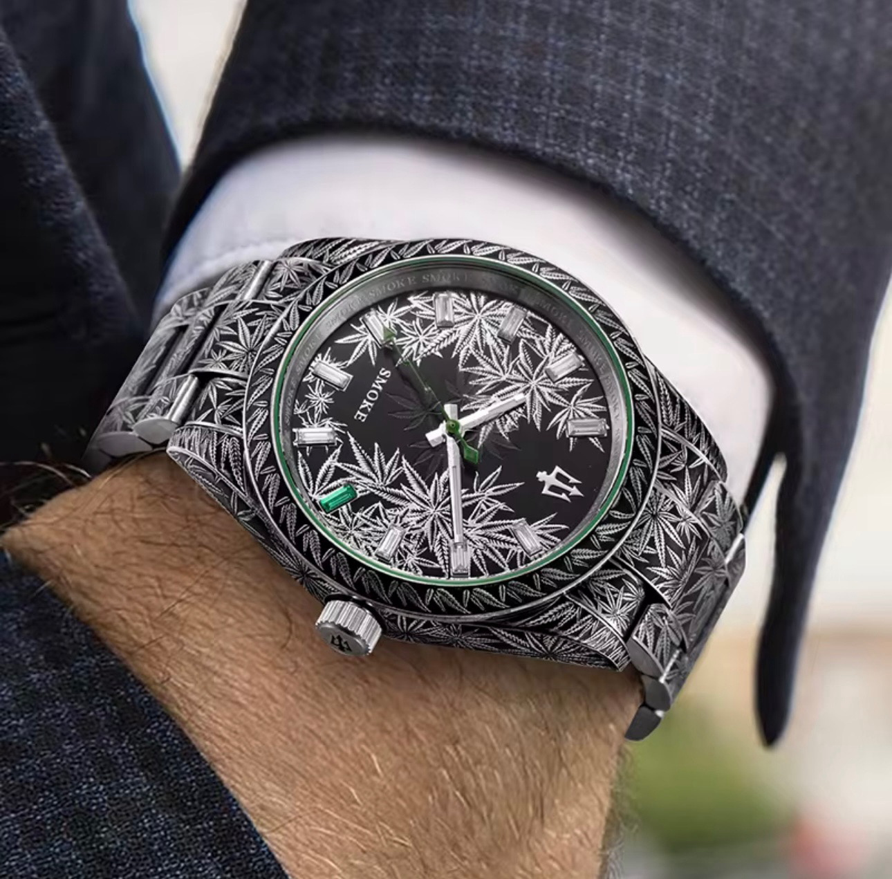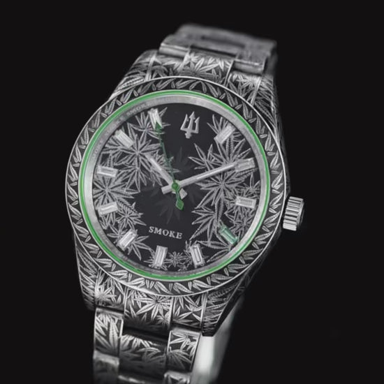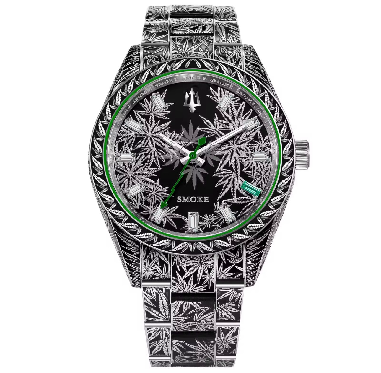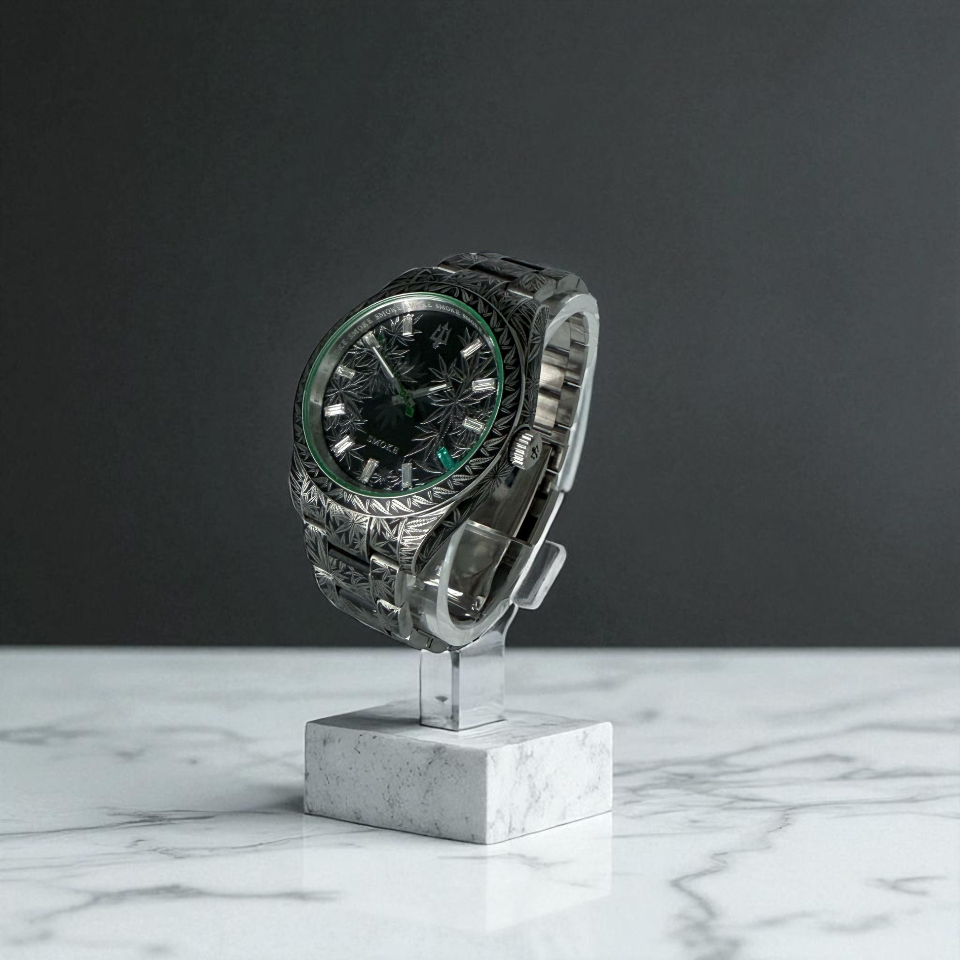 The Genesis is where timeless craftsmanship meets cannabis culture. This 41mm luxury timepiece is hand-carved in Japan by a Tokei Takumi artisan, with over 50 hours devoted to perfecting each detail.