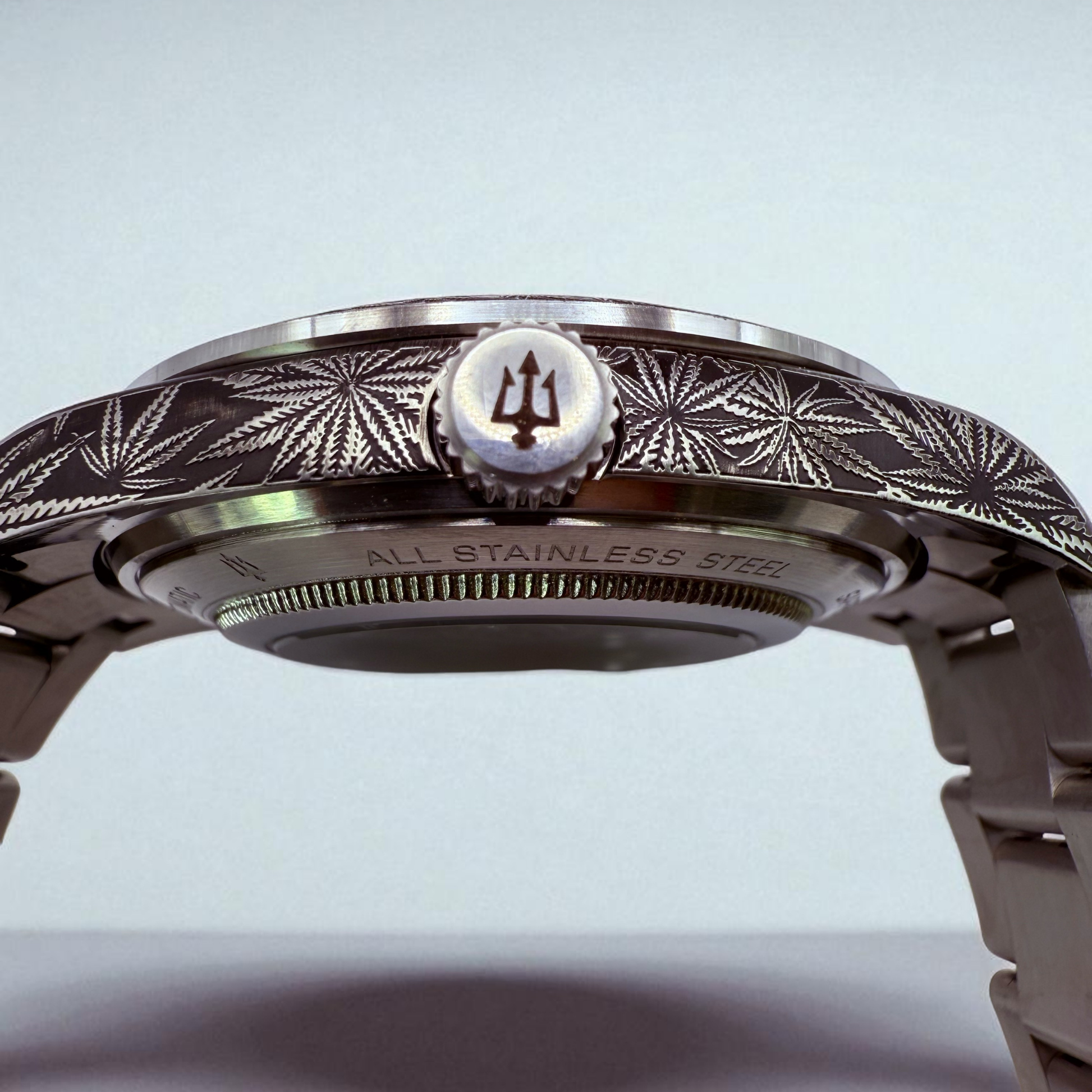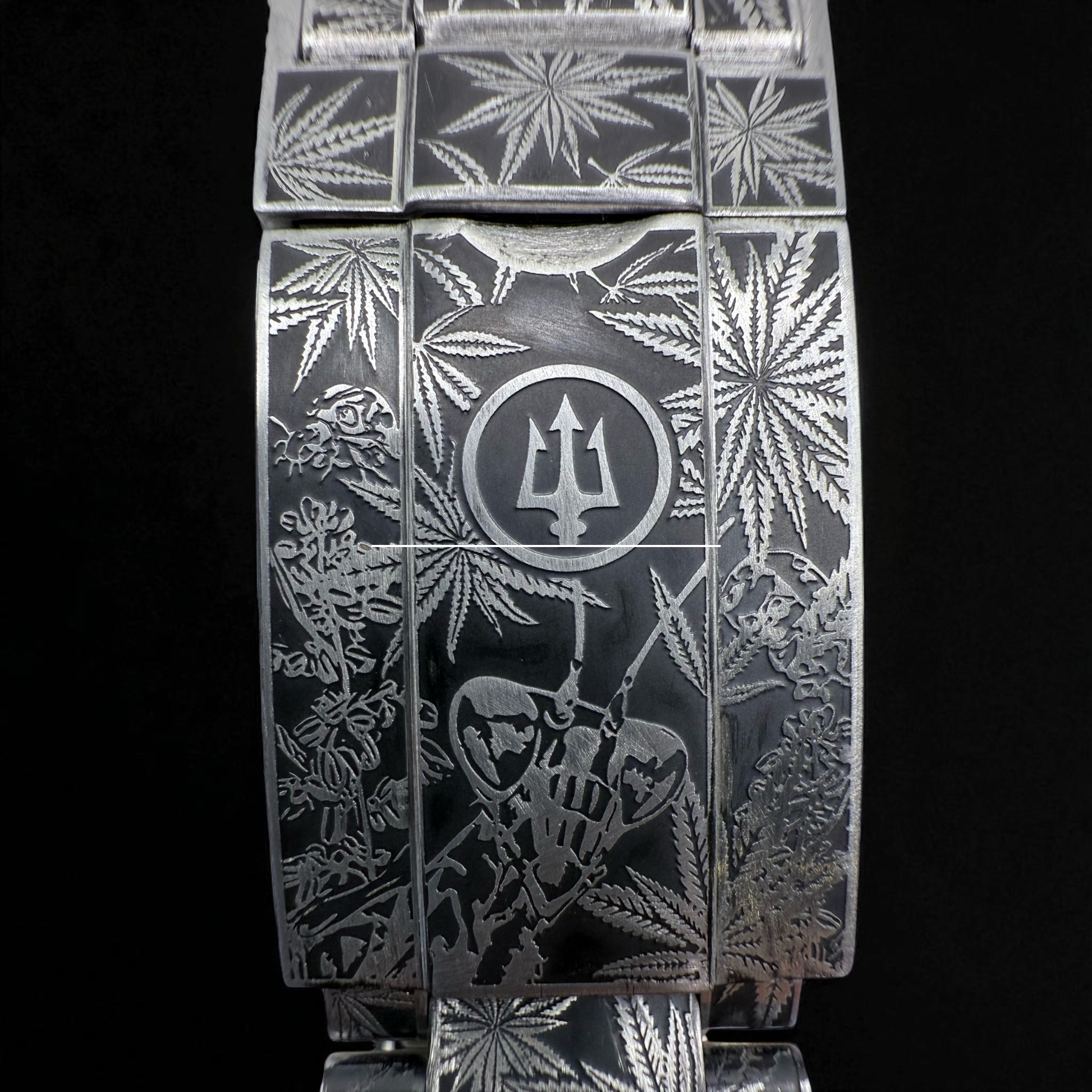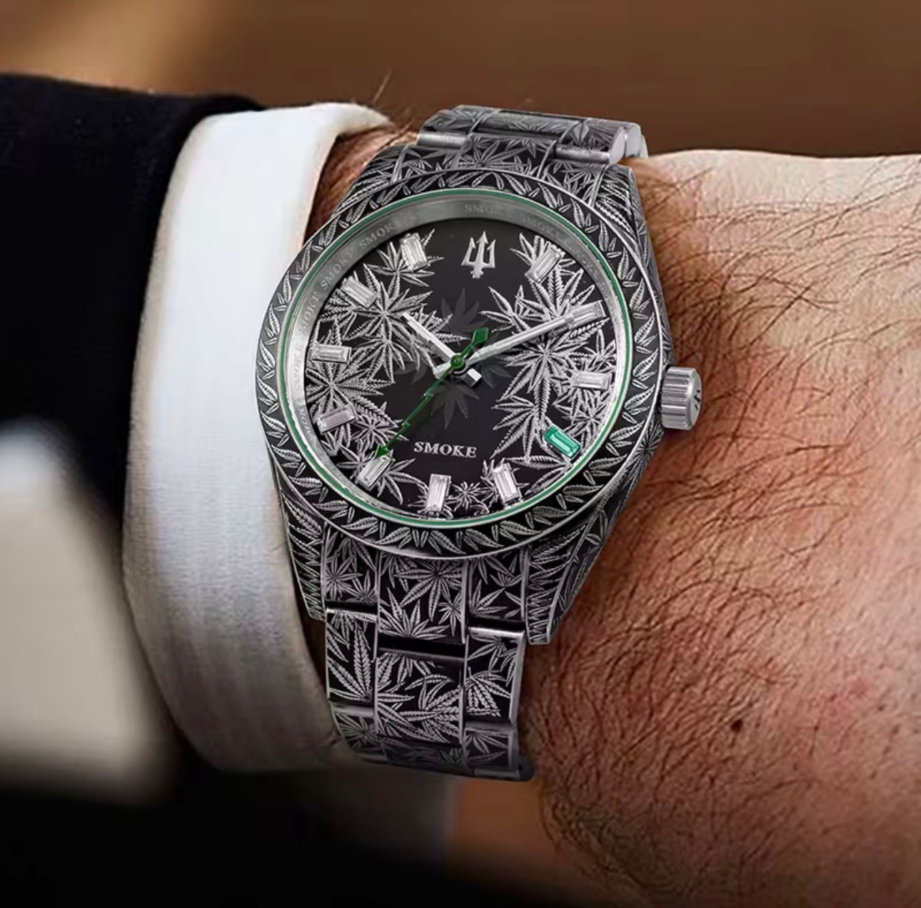 The Genesis is where timeless craftsmanship meets cannabis culture. This 41mm luxury timepiece is hand-carved in Japan by a Tokei Takumi artisan, with over 50 hours devoted to perfecting each detail.